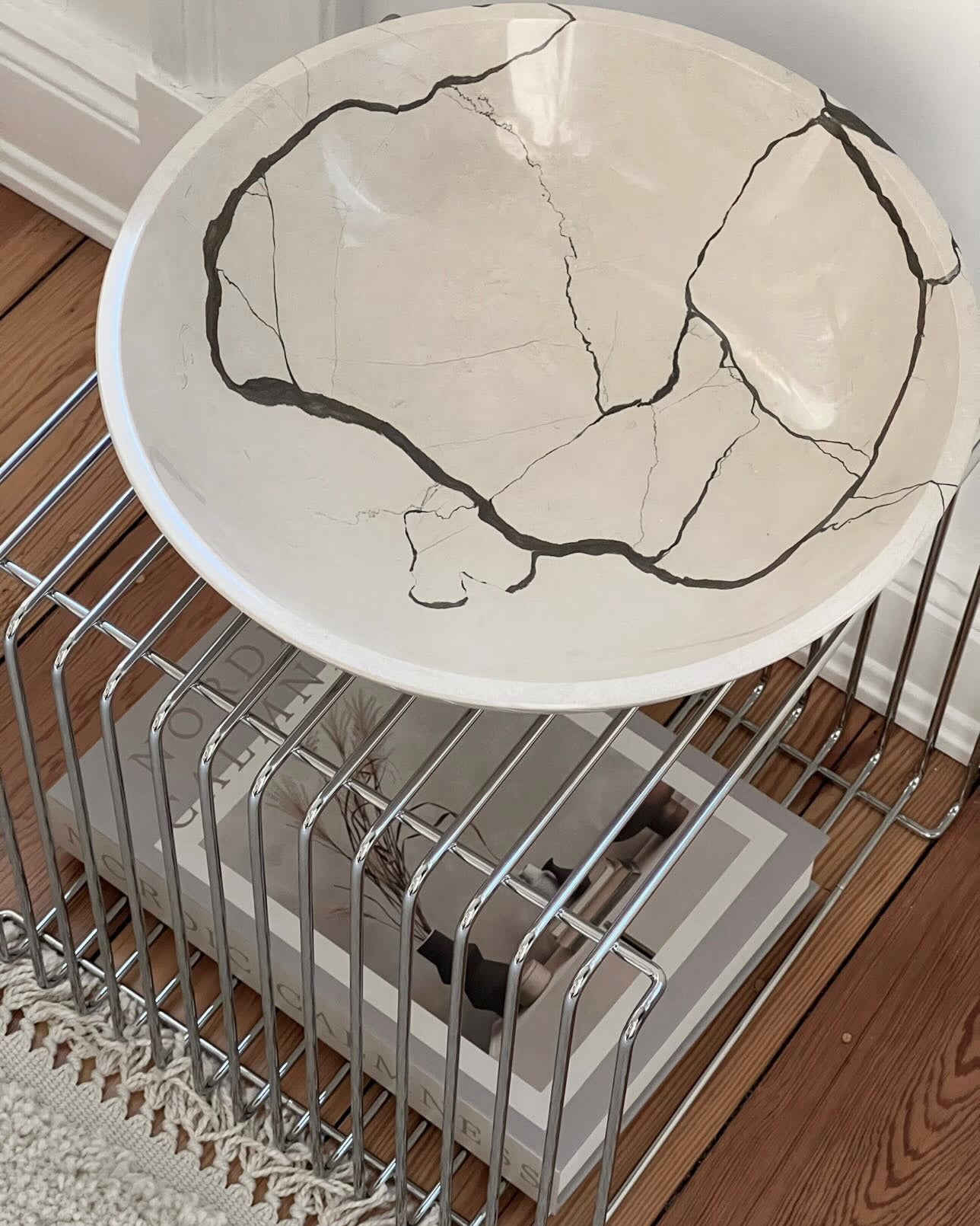 Massiver Stein, gewachsen über Jahrmillionen, mit charakteristisch dunkler Maserung. In präziser Handarbeit in klare Formen gebracht. Jede Kante, jede Linie: das Ergebnis geduldiger Arbeit.