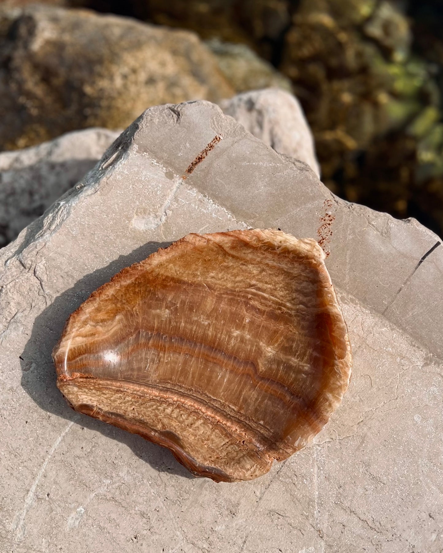 Schale Zora in organischer Form aus Calcit-Mineral