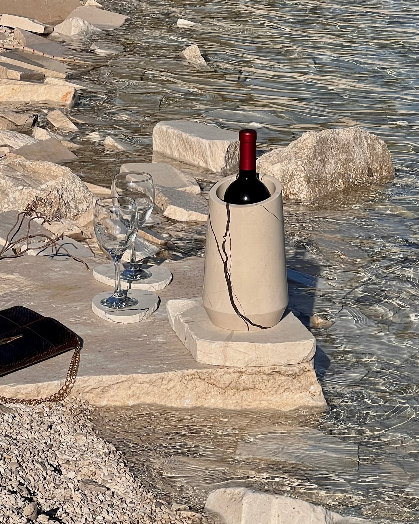 Weinkühler Vedran im Meer ohne Flasche